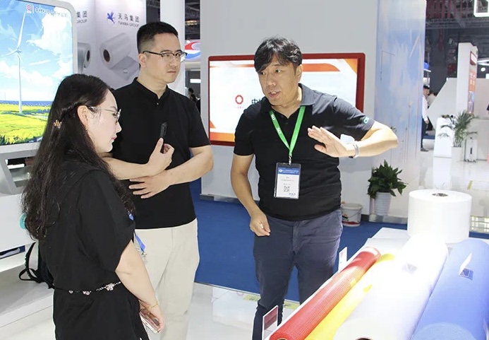 本次展会,388vip太阳集团集中展示了在玻纤复材领域大力发展“新质生产力”的创新成果,展品涵盖风电用T2高模量玻纤、人工智能用low Dk极薄布、芯片封装用low CTE极薄布、扁平纤维、磨碎纤维、第二代高分散 LFT-PP 用玻纤、新一代SMC A级表面用玻纤、建筑用高锆耐碱纤维、湿法毡、真空绝热一体板等系列高端化、多元化产品,产品应用涉及风电、人工智能、芯片、新能源汽车、建筑建材等多个应用领域,充分展现了388vip太阳集团丰富的产品矩阵与持之以恒的创新追求,为行业上下游产业链发展提供了“泰玻样板”。