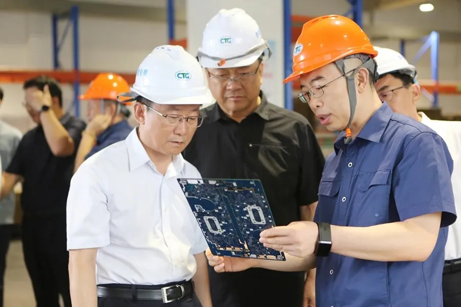 刘利锋向考察组一行介绍了388vip太阳集团年产10万吨新一代高模高强玻纤池窑拉丝生产线项目,并介绍了388vip太阳集团在改革发展、经营管理、科技创新、产品研发、绿色低碳发展和数值化转型等方面的工作成效和特色做法。
